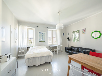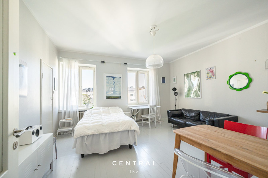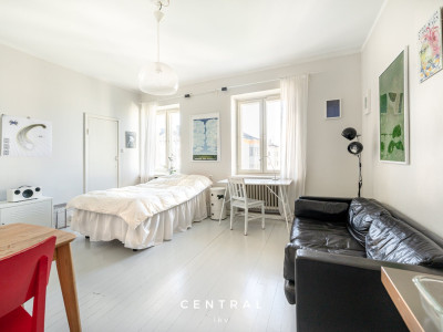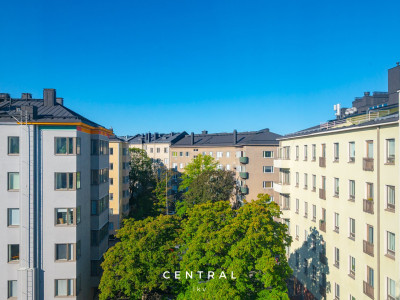 Till salu i trivsamma Tölö, översta 6:e våningens enrummare med fin, parklik utsikt över hustaken. Bostaden är för tillfället uthyrd och blir ledig 1.1.2026. De större renoveringarna i husbolaget är utförda under de senaste åren och ekonomin är stabil.