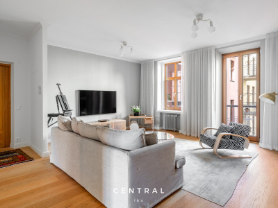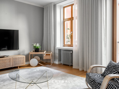 Available for long term rent in the sought after Ullanlinna area, a lovely two bedroom flat in very good condition. French balcony in the living room. The flat is decorated to a high standard. At Vuorimiehenkatu you are a short walking distance from the City Center and also near the sea shore. There is a communal sauna to be booked subject to availability. Nice inner yard with play area for children.