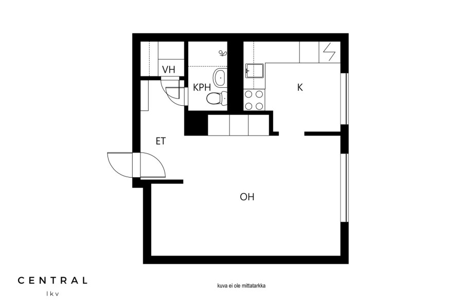 Siisti, heti vapaa tilava kalustamaton yksiö tarjotaan vuokralle, vähintään 12 kk.