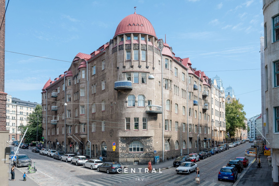 Kahden makuuhuoneen ensimmäisen kerroksen kaunis koti, selkeä pohja ja ihastuttava iso keittiö, joka oikein kutsuu yhdessäoloon ja kokkailuun. Tilava eteisaula toimii esimerkiksi myös kirjastona tai työtilana. Erillinen wc ja kylpyhuone, jonka yhteydessä sauna. Vaatehuone ja runsaasti kaappeja. Kauniit jugentyyliset yksityiskohdat, kuten kauniit kaari-ikkunat ja korkeat huoneet.