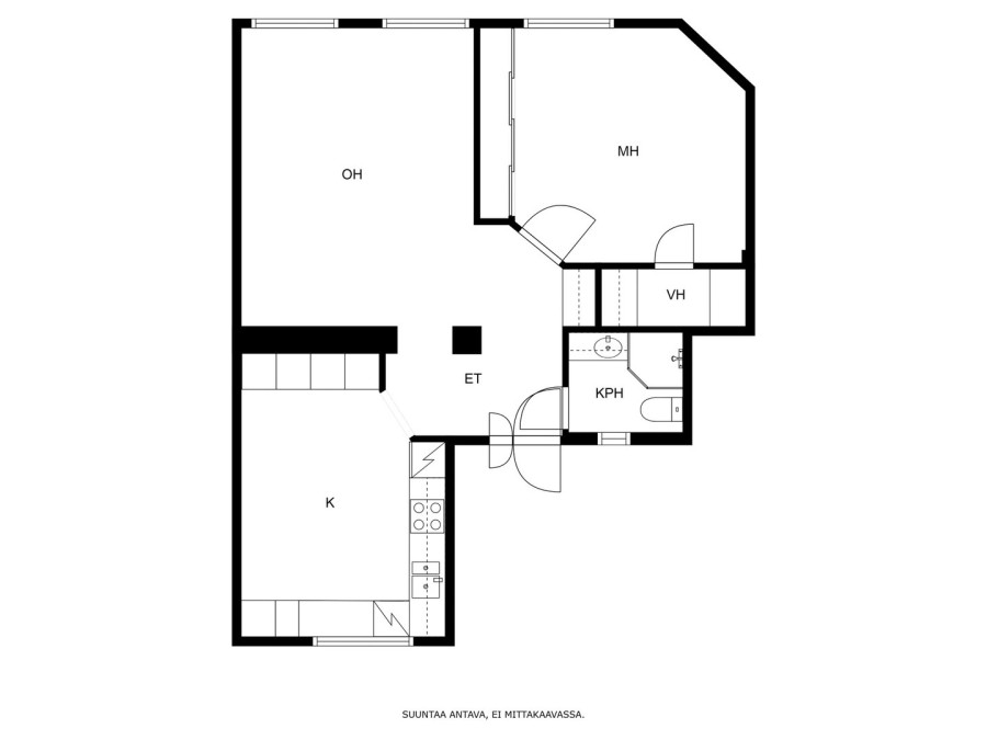 Tämä 68,5 m²:n tarjoaa avaran ja valoisan olohuoneen, josta avautuvat näkymät eläväiselle Lapinrinteelle. Korkeat huonekorkeudet tuovat lisää avaruuden tuntua ja luonnonvaloa sisään.