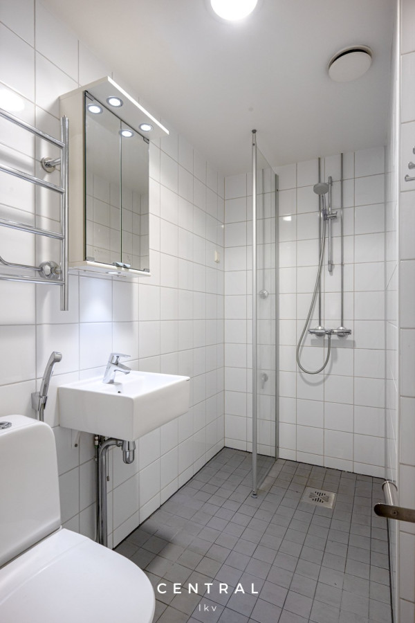 Keittiö, eteinen ja lattiapinnat kaipaavat kunnostuksen, hyvä pohjaratkaisu luo pohjan omien toiveiden mukaiselle remontille. Kylpyhuone on remontoitu taloyhtiön putkiremontin yhteydessä, ja sieltä löytyy lattialämmitys sekä tilaa pesukoneelle.