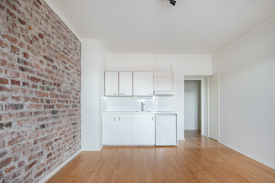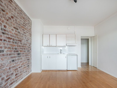 Kompakti yksiö Alppilan sydämessä tarjoaa mahdollisuuden luoda unelmiesi kaupunkikoti. Tämä ylimmän kerroksen asunto on valoisa ja sieltä avautuvat upeat näkymät Linnanmäen suuntaan. Asunnon olohuoneessa on tiiliseinä, joka tuo tilaan persoonallisuutta ja kodikkuutta.