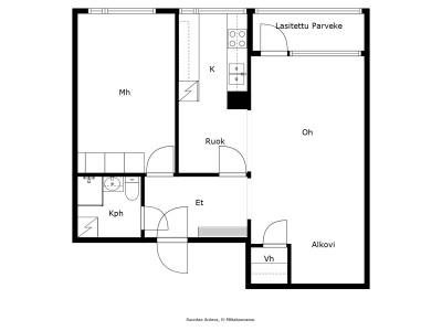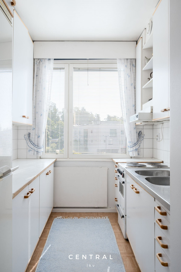 Tämä kolmannen kerroksen koti sijaitsee Kauniaisten keskustassa, erinomaisten palveluiden ja liikenneyhteyksien äärellä. Huoneistossa on kaksi huonetta, keittiö, alkovi, kylpyhuone sekä lasitettu parveke.