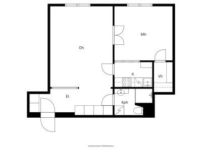Öppen tvåa i bra skick i iUlroikasborg ledig från och med 1.2.2026. Badrummet genomgår en lätt renovering före överlåtelse.