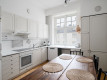 Keittiön kuvaus | Sisäpihan suuntaan, tilaa ruokapöydälle- hyvin kaappi/säilytystilaa. Iso ikkuna tuo valoa ja lisää tilan tuntua. |