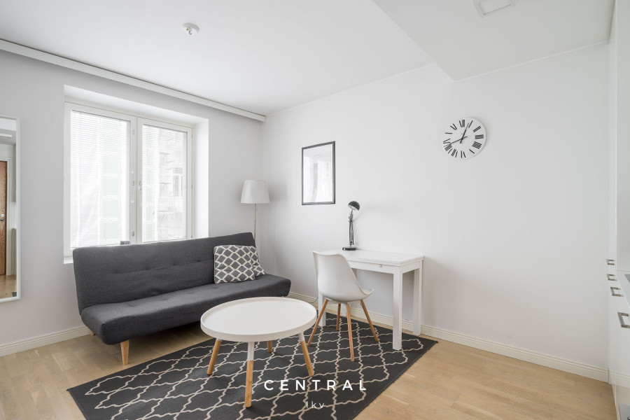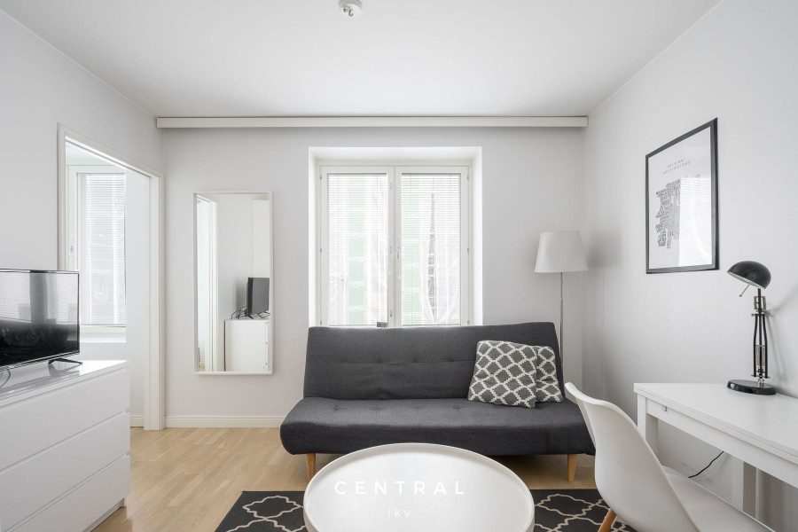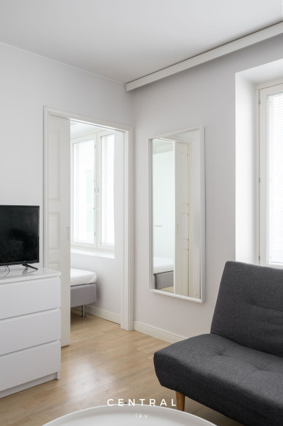 Väldisponerad och funktionell tvåa i gott skick på paradplats i Helsingfors, alldeles invid Gamla Kyrkan. Bostaden ligger i tystnaden av den anrika, år 1890 byggda fastighetens innergård. Välförsett öppet kök och rymligt, fräscht badrum med dusch och tvättmaskin. Bostaden hyrs omöblerad eller möblerad enligt överenskommelse. Husbolaget har bastu, tvättstuga och gym.