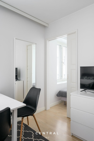 Well equipped open plan kitchen, spacious bathroom with shower and washing machine. Communal laundry room, sauna and gym. The flat is located in the quietness of the inner yard or the prominent building from 1890. The flat is rented unfurnished or furnished upon agreement and your requirements.