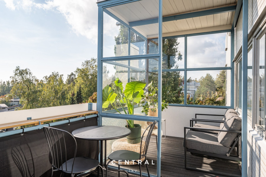 Ainutlaatuinen ylimmän kerroksen kattohuoneisto avoimin merinäkymin Westendissä. Läpitalon päätyhuoneisto tarjoaa sinulle muuttovalmiin kodin, jossa erillinen keittiö ja leveä terassi. Kylpyhuoneesta pääsy suoraan terassille vilvoittelemaan. Huoneistosta näkymät kolmeen ilmansuuntaan, talo on Erkki Kairamon suunnittelema ikoninen pienkerrostalo rauhallisella alueella.