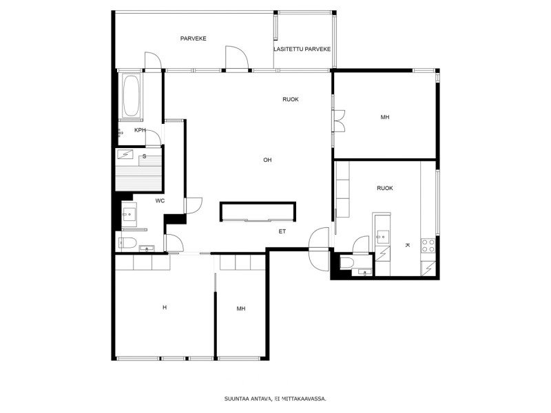 Huoneiston kokoonpano4h, k, kph, 2wc, et, terassip.