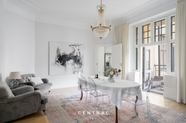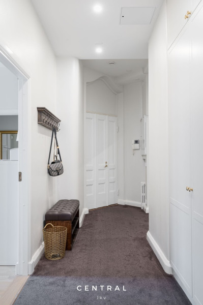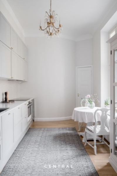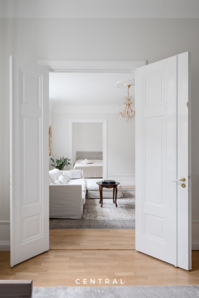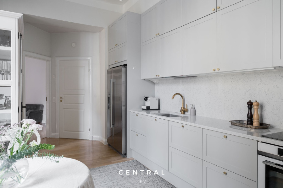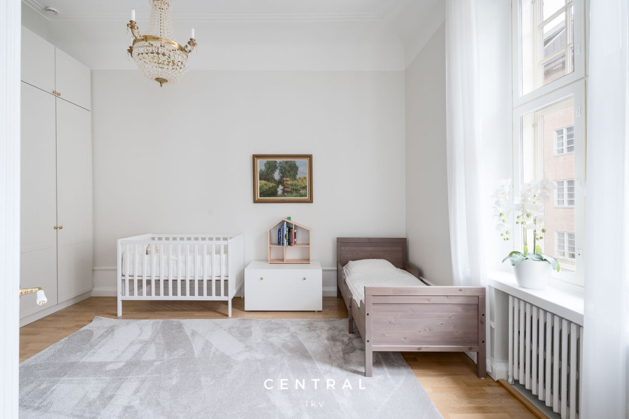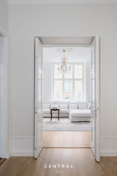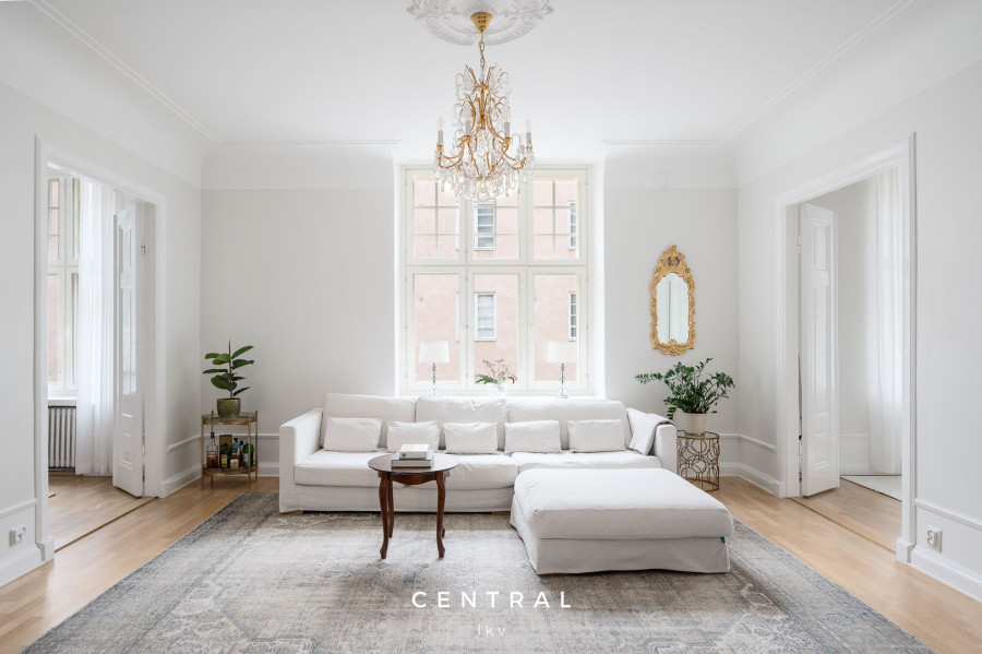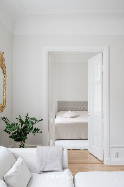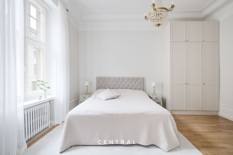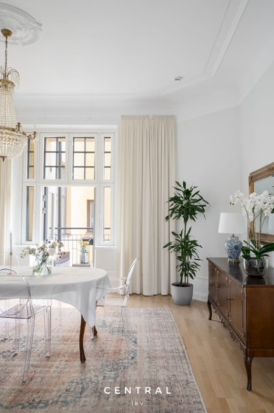 Elegant jugendvåning med imponerande takhöjd, vackra kakelugnar och egen balkong. Klar planlösning med sammanlagt fyra sovrum. Helheten består av två bostadsaktier, varav en 17m2 enrummare som går separera från resten. Denna etta har naturligtvis en egen ingång och fungerar bra som t.ex. ett hemkontor. Här bor du alldeles i Helsingfors kärncentrum men ändå på ett lugnt område. Kort promenadavstånd till järnvägsstationen och för övrigt mångsidigt serviceutbud och trafikförbindelser.