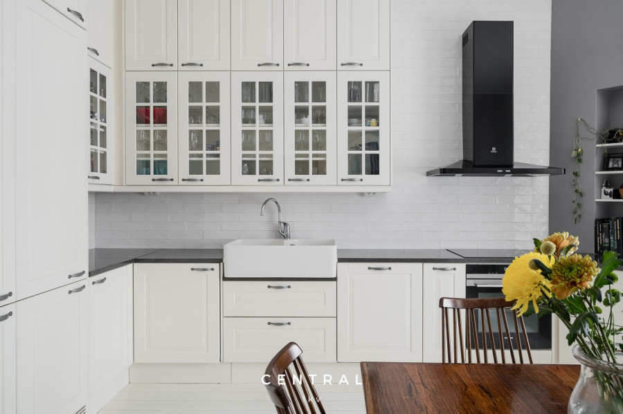 Kahden makuuhuoneen ensimmäisen kerroksen kaunis koti, selkeä pohja ja ihastuttava iso keittiö, joka oikein kutsuu yhdessäoloon ja kokkailuun. Tilava eteisaula toimii esimerkiksi myös kirjastona tai työtilana. Erillinen wc ja kylpyhuone, jonka yhteydessä sauna. Vaatehuone ja runsaasti kaappeja. Kauniit jugentyyliset ykistyiskohdat, kuten kauniit kaari-ikkunat ja korkeat huoneet.