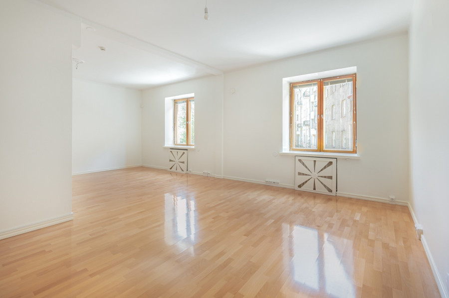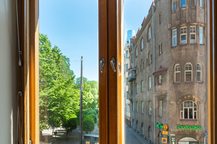 Huoneistossa on kaksi makuuhuonetta, mutta helposti saa kolmannen. Korkeat huoneet ja avara pohjaratkaisu loihtivat tilan tuntua asuntoon. Miellyttävät näkymät asunnosta avautuvat sekä Vuorimiehenpuistikkoon että talon sisäpihalle.