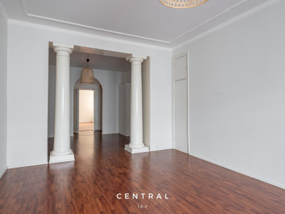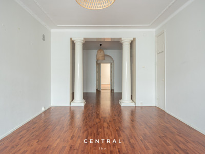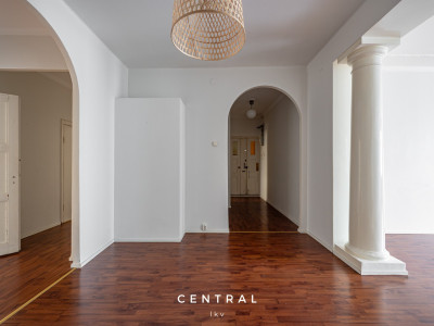 Eteisessä lounge-tila, jossa tyylikäs pylväikkö, eteistila yhdistää olohuoneen ja makuuhuoneen.