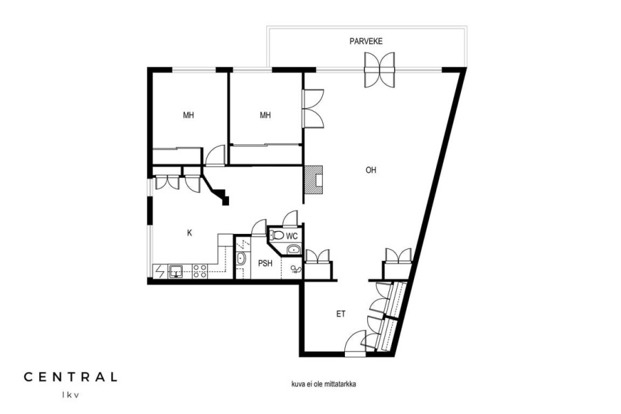 Huoneiston kokoonpano3h, k, kph, wc, et, halli, p