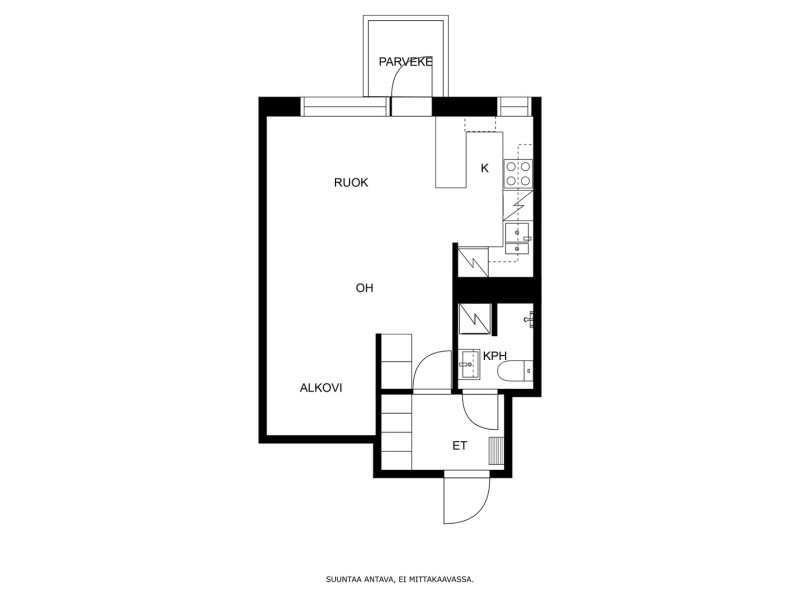 Huoneiston kokoonpano1h, avok, alkovi, kph, p