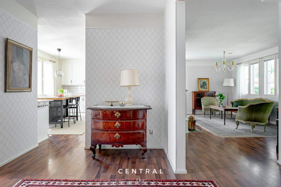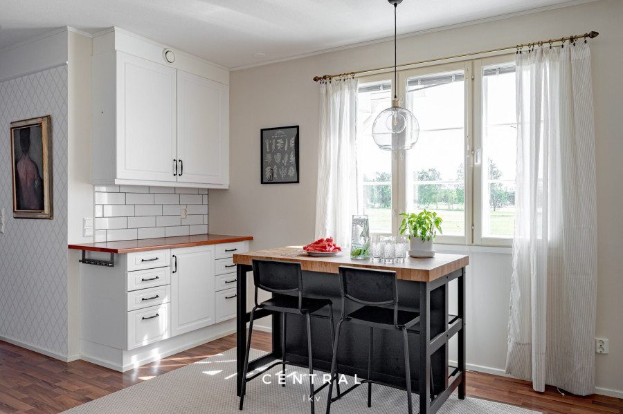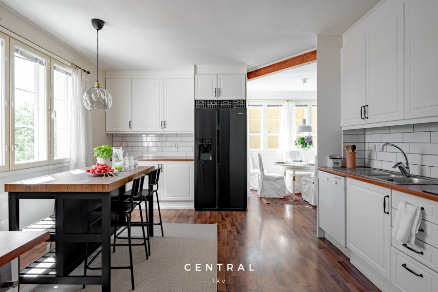 | Keittiön varustetaso | Jääkaappipakastin (2023 (takuu 2025)), uuni (2009), astianpesukone (2009, huollettu 2021), erillinen pakastin (2019), liesituuletin (2023), liesi ja keittiösaareke |