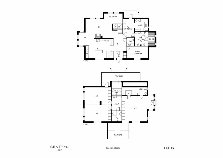 | Huoneiston kokoonpano | 5h, k, rt, kirjasto, 3kph, 4wc, khh, s, vh, 2xp, 1xransk.p |