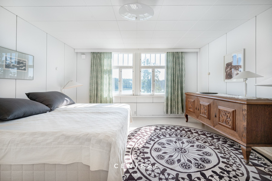 Idyllinen 1930-luvulla rakennettu kaavassa suojeltu huvila, omalla 5539 m2 merenrantaan ulottuvalla hallinta-alueella. Noin 120 m pitkässä kaakkoon/etelään päin avautuvassa rannassa on sekä matalaa hiekkarantaa, että laiturin päässä syvyyttä isommallekin veneelle. Rantasauna tilavalla terassilla ja tuvalla. Kaunis puutarhapiha ja nurmikot, yhtiöllä sopimus huoltoyhtiön kanssa, joka on perehtynyt kiinteistöön ja auttaa ylläpidossa tarvittaessa.