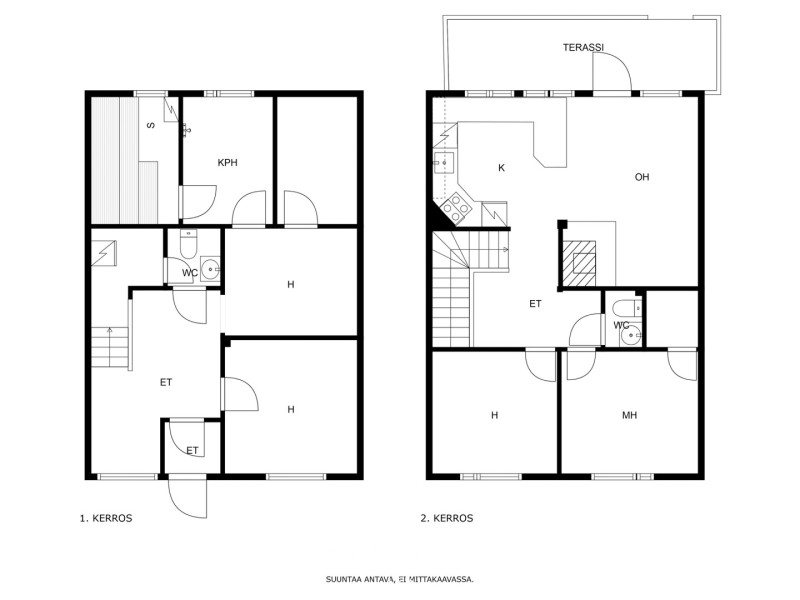 Molemmissa tasoissa on erilliset wc:t, alakerrassa tilavat sauna/kph-tilat.