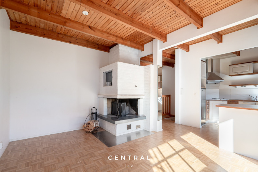 Olohuoneen takka luo tunnelmaa syys-ja talvi-iltoihin.