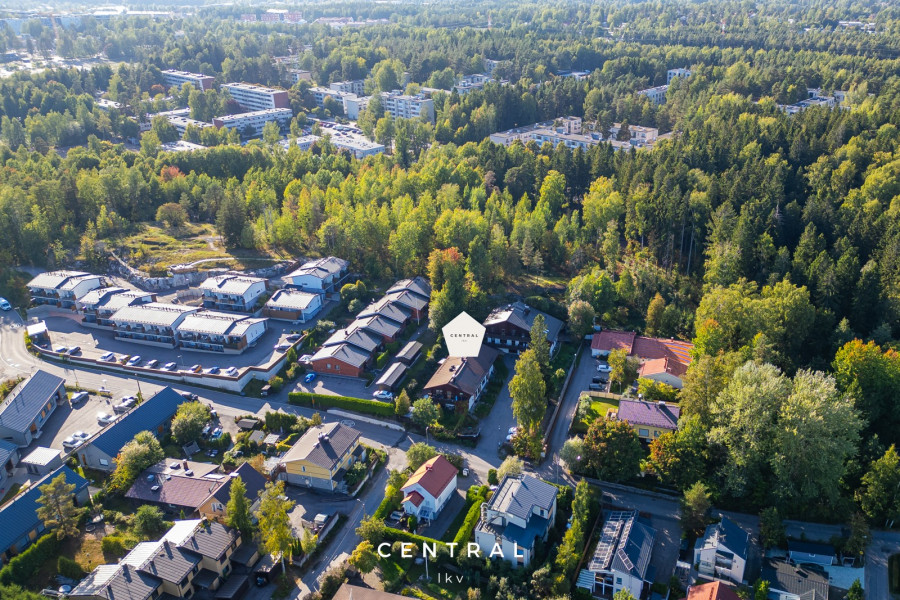 Läpitalon asunnosta näkymät etupihalle - vehreät sisäpihanäkymät takapihan parvekkeelta ja omalta terassipihalta. Rajakylän alue tunnetaan viihtyisänä ja lapsiystävällisenä, jossa luonto ja palvelut ovat sopivassa tasapainossa. Miellyttävä ja ystävällinen naapurusto, taloyhtiössä osakkaiden omatoiminen yhteisten piha-alueiden hoito.